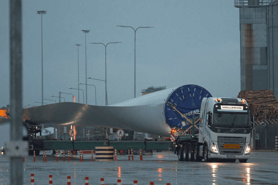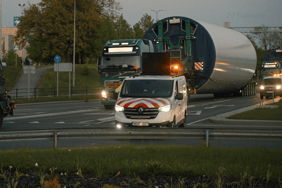 Months of preparation were carried out for the project, including coordination of the transport route with VIA LIETUVA and project approval before the Traffic Safety Commission of Klaipėda City Municipality. During the transport operations, one of the challenges was coordinating movements with the delivery of a large industrial reactor, which shared part of the route with the wind turbine components.